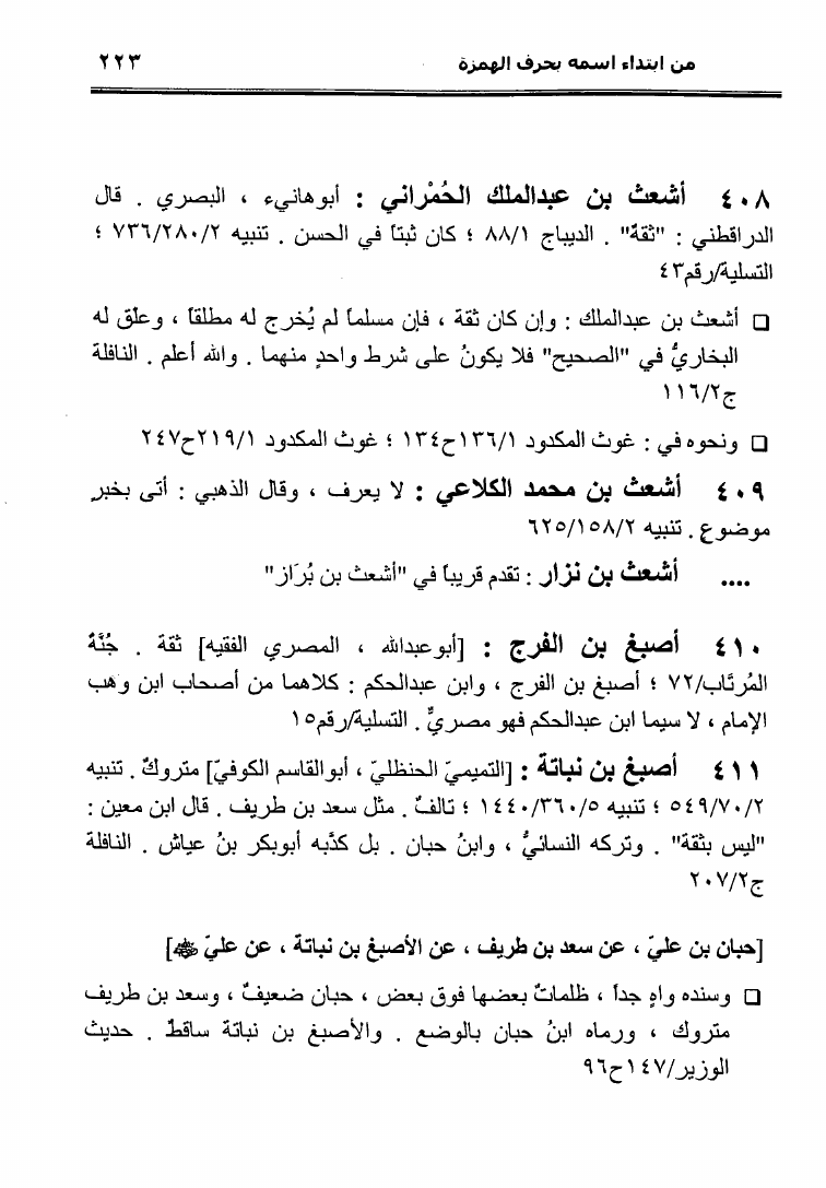 نام کتاب : نثل النبال بمعجم الرجال الذين ترجم لهم فضيلة الشيخ المحدث أبو إسحاق الحويني (ط. المحدثين) نویسنده : أحمد بن عطية الوكيل أبو عمرو جلد : 1 صفحه : 223