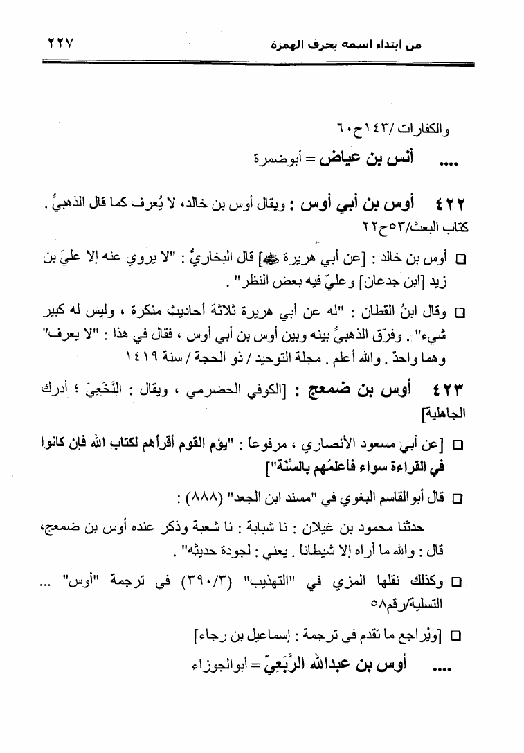 نام کتاب : نثل النبال بمعجم الرجال الذين ترجم لهم فضيلة الشيخ المحدث أبو إسحاق الحويني (ط. المحدثين) نویسنده : أحمد بن عطية الوكيل أبو عمرو جلد : 1 صفحه : 227