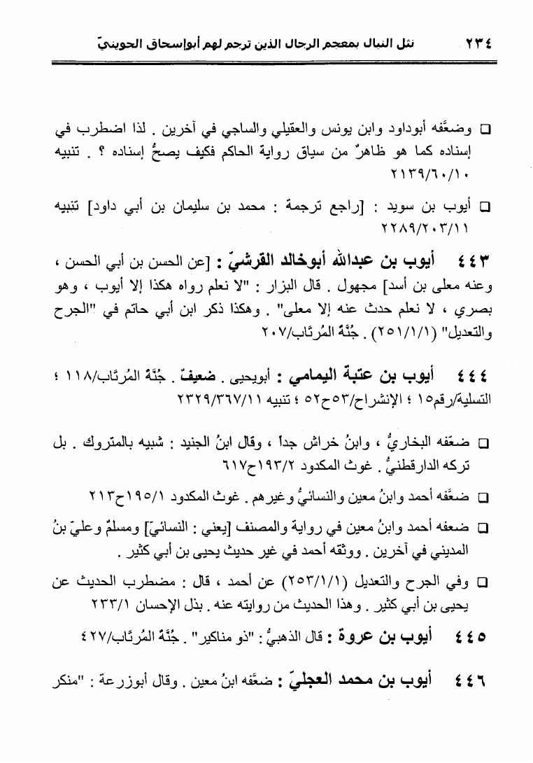 نام کتاب : نثل النبال بمعجم الرجال الذين ترجم لهم فضيلة الشيخ المحدث أبو إسحاق الحويني (ط. المحدثين) نویسنده : أحمد بن عطية الوكيل أبو عمرو جلد : 1 صفحه : 234