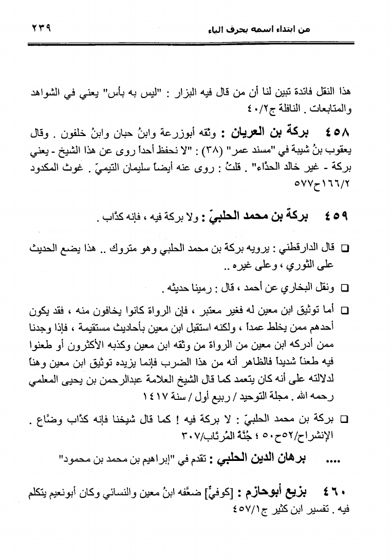 نام کتاب : نثل النبال بمعجم الرجال الذين ترجم لهم فضيلة الشيخ المحدث أبو إسحاق الحويني (ط. المحدثين) نویسنده : أحمد بن عطية الوكيل أبو عمرو جلد : 1 صفحه : 239