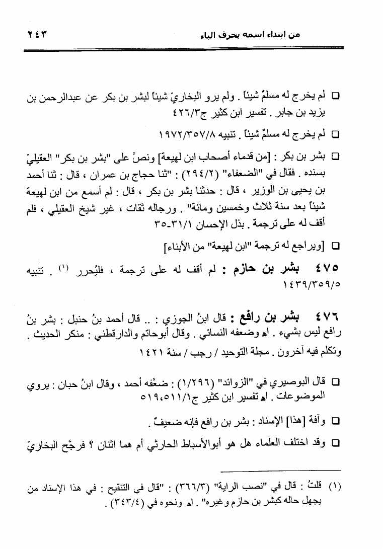 نام کتاب : نثل النبال بمعجم الرجال الذين ترجم لهم فضيلة الشيخ المحدث أبو إسحاق الحويني (ط. المحدثين) نویسنده : أحمد بن عطية الوكيل أبو عمرو جلد : 1 صفحه : 243