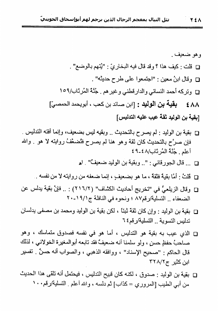 نام کتاب : نثل النبال بمعجم الرجال الذين ترجم لهم فضيلة الشيخ المحدث أبو إسحاق الحويني (ط. المحدثين) نویسنده : أحمد بن عطية الوكيل أبو عمرو جلد : 1 صفحه : 248