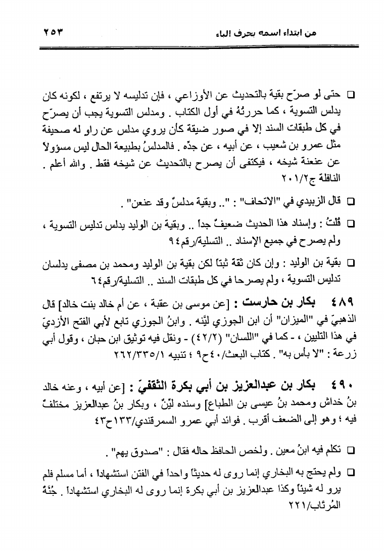 نام کتاب : نثل النبال بمعجم الرجال الذين ترجم لهم فضيلة الشيخ المحدث أبو إسحاق الحويني (ط. المحدثين) نویسنده : أحمد بن عطية الوكيل أبو عمرو جلد : 1 صفحه : 253