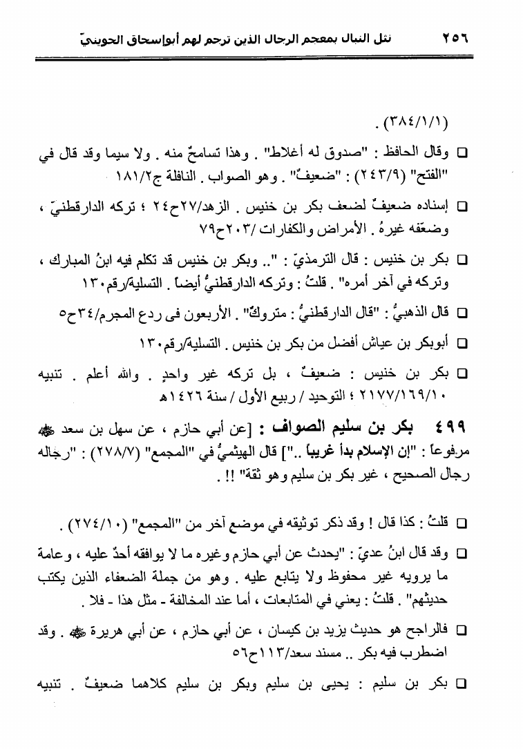 نام کتاب : نثل النبال بمعجم الرجال الذين ترجم لهم فضيلة الشيخ المحدث أبو إسحاق الحويني (ط. المحدثين) نویسنده : أحمد بن عطية الوكيل أبو عمرو جلد : 1 صفحه : 256