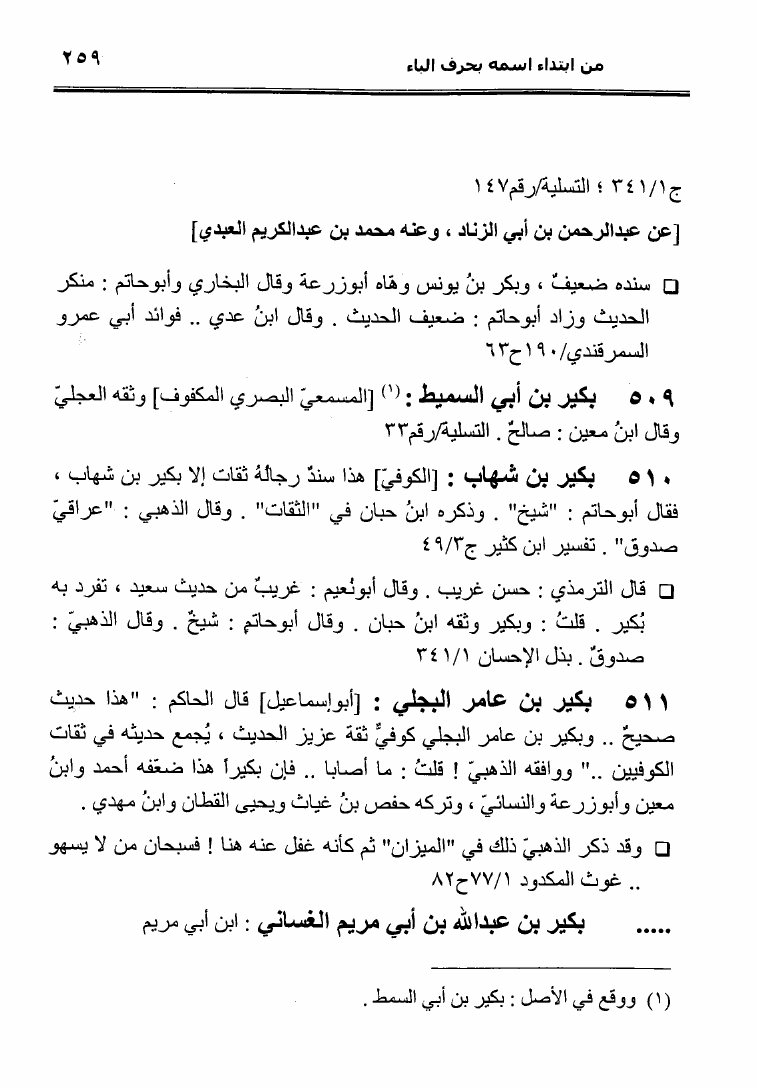 نام کتاب : نثل النبال بمعجم الرجال الذين ترجم لهم فضيلة الشيخ المحدث أبو إسحاق الحويني (ط. المحدثين) نویسنده : أحمد بن عطية الوكيل أبو عمرو جلد : 1 صفحه : 259