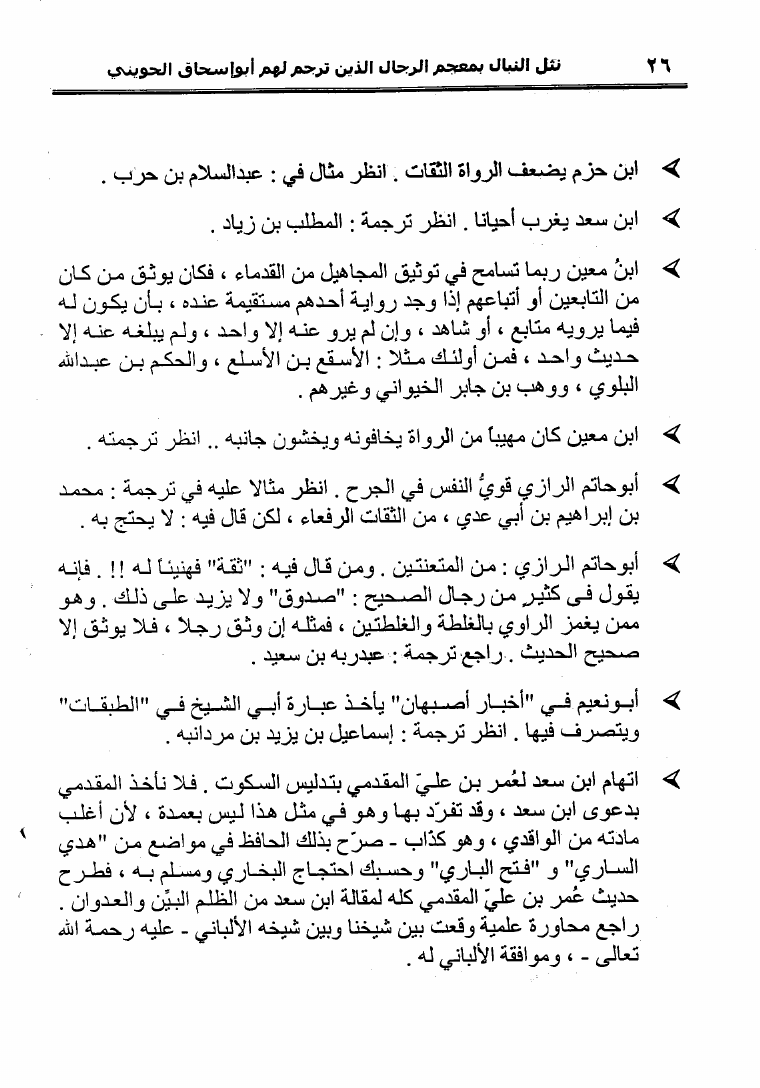نام کتاب : نثل النبال بمعجم الرجال الذين ترجم لهم فضيلة الشيخ المحدث أبو إسحاق الحويني (ط. المحدثين) نویسنده : أحمد بن عطية الوكيل أبو عمرو جلد : 1 صفحه : 26