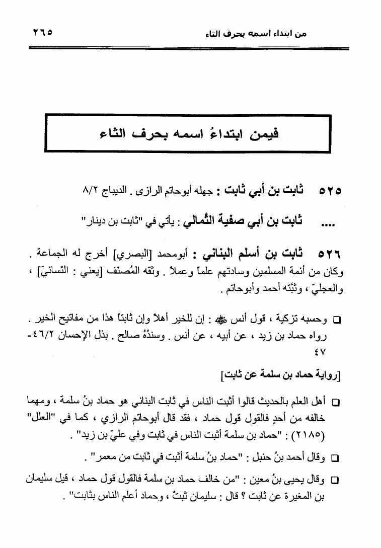 نام کتاب : نثل النبال بمعجم الرجال الذين ترجم لهم فضيلة الشيخ المحدث أبو إسحاق الحويني (ط. المحدثين) نویسنده : أحمد بن عطية الوكيل أبو عمرو جلد : 1 صفحه : 265