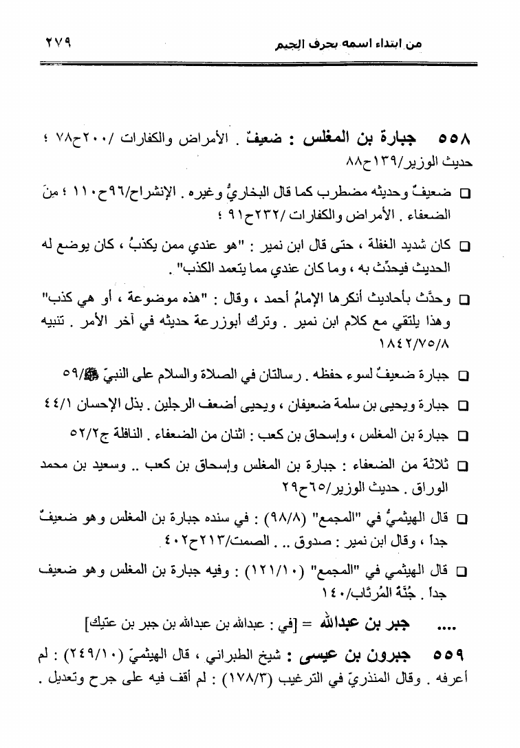 نام کتاب : نثل النبال بمعجم الرجال الذين ترجم لهم فضيلة الشيخ المحدث أبو إسحاق الحويني (ط. المحدثين) نویسنده : أحمد بن عطية الوكيل أبو عمرو جلد : 1 صفحه : 279