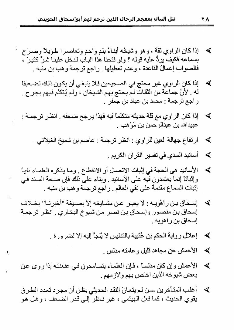 نام کتاب : نثل النبال بمعجم الرجال الذين ترجم لهم فضيلة الشيخ المحدث أبو إسحاق الحويني (ط. المحدثين) نویسنده : أحمد بن عطية الوكيل أبو عمرو جلد : 1 صفحه : 28