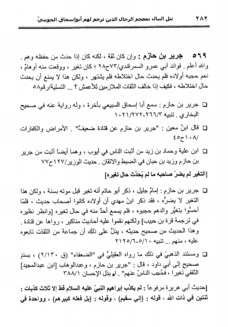نام کتاب : نثل النبال بمعجم الرجال الذين ترجم لهم فضيلة الشيخ المحدث أبو إسحاق الحويني (ط. المحدثين) نویسنده : أحمد بن عطية الوكيل أبو عمرو جلد : 1 صفحه : 282