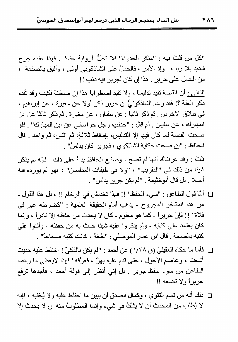 نام کتاب : نثل النبال بمعجم الرجال الذين ترجم لهم فضيلة الشيخ المحدث أبو إسحاق الحويني (ط. المحدثين) نویسنده : أحمد بن عطية الوكيل أبو عمرو جلد : 1 صفحه : 286
