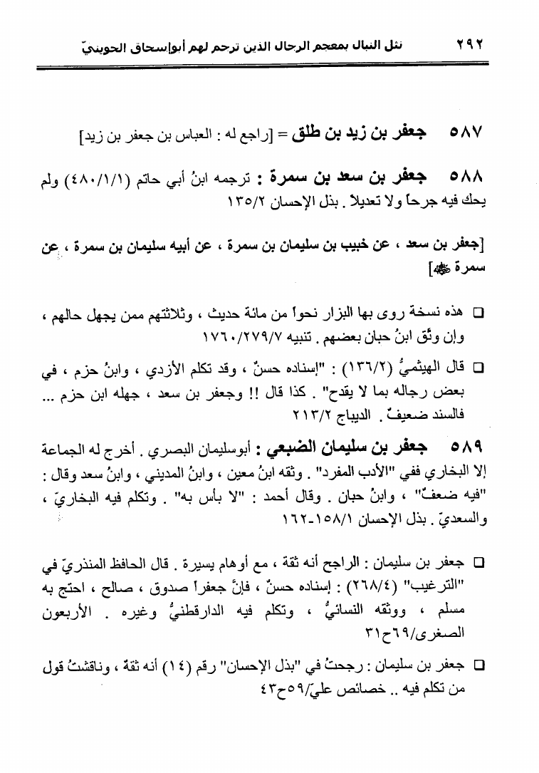 نام کتاب : نثل النبال بمعجم الرجال الذين ترجم لهم فضيلة الشيخ المحدث أبو إسحاق الحويني (ط. المحدثين) نویسنده : أحمد بن عطية الوكيل أبو عمرو جلد : 1 صفحه : 292