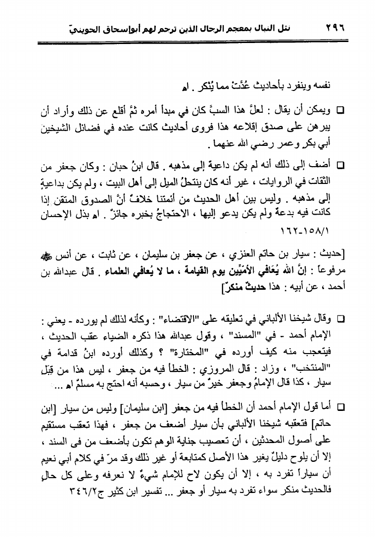 نام کتاب : نثل النبال بمعجم الرجال الذين ترجم لهم فضيلة الشيخ المحدث أبو إسحاق الحويني (ط. المحدثين) نویسنده : أحمد بن عطية الوكيل أبو عمرو جلد : 1 صفحه : 296