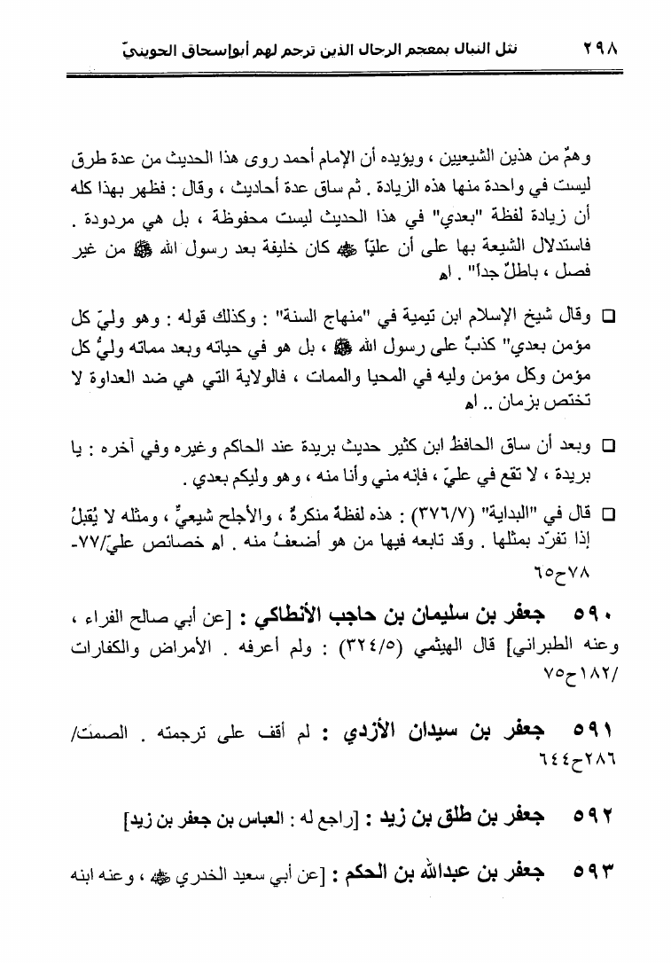 نام کتاب : نثل النبال بمعجم الرجال الذين ترجم لهم فضيلة الشيخ المحدث أبو إسحاق الحويني (ط. المحدثين) نویسنده : أحمد بن عطية الوكيل أبو عمرو جلد : 1 صفحه : 298