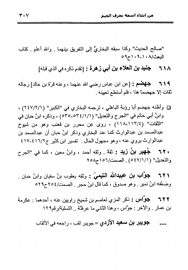 نام کتاب : نثل النبال بمعجم الرجال الذين ترجم لهم فضيلة الشيخ المحدث أبو إسحاق الحويني (ط. المحدثين) نویسنده : أحمد بن عطية الوكيل أبو عمرو جلد : 1 صفحه : 307