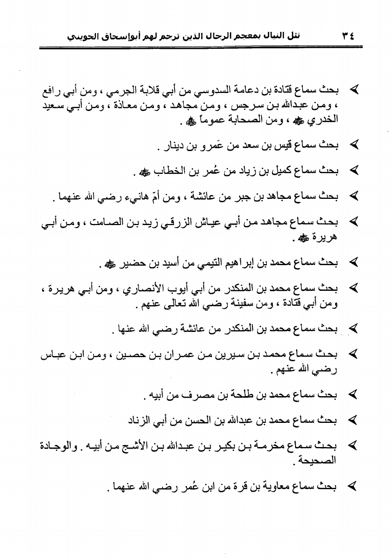 نام کتاب : نثل النبال بمعجم الرجال الذين ترجم لهم فضيلة الشيخ المحدث أبو إسحاق الحويني (ط. المحدثين) نویسنده : أحمد بن عطية الوكيل أبو عمرو جلد : 1 صفحه : 34