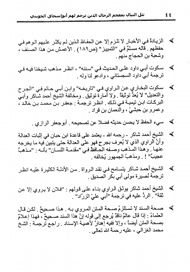 نام کتاب : نثل النبال بمعجم الرجال الذين ترجم لهم فضيلة الشيخ المحدث أبو إسحاق الحويني (ط. المحدثين) نویسنده : أحمد بن عطية الوكيل أبو عمرو جلد : 1 صفحه : 44