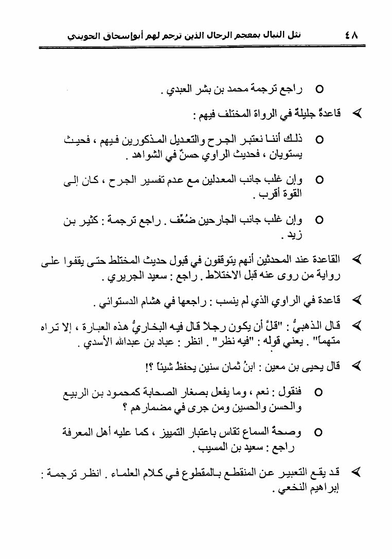 نام کتاب : نثل النبال بمعجم الرجال الذين ترجم لهم فضيلة الشيخ المحدث أبو إسحاق الحويني (ط. المحدثين) نویسنده : أحمد بن عطية الوكيل أبو عمرو جلد : 1 صفحه : 48