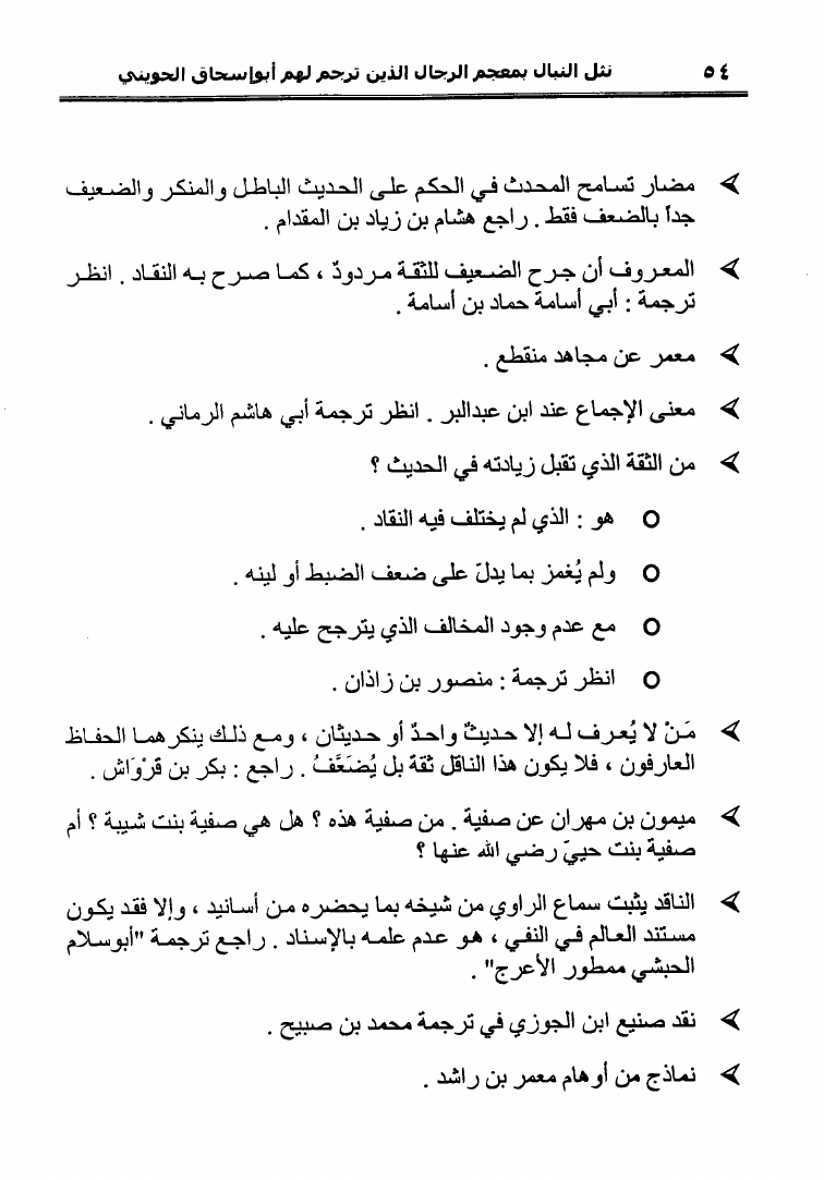 نام کتاب : نثل النبال بمعجم الرجال الذين ترجم لهم فضيلة الشيخ المحدث أبو إسحاق الحويني (ط. المحدثين) نویسنده : أحمد بن عطية الوكيل أبو عمرو جلد : 1 صفحه : 54