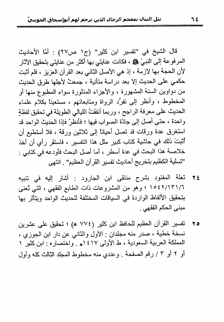 نام کتاب : نثل النبال بمعجم الرجال الذين ترجم لهم فضيلة الشيخ المحدث أبو إسحاق الحويني (ط. المحدثين) نویسنده : أحمد بن عطية الوكيل أبو عمرو جلد : 1 صفحه : 64