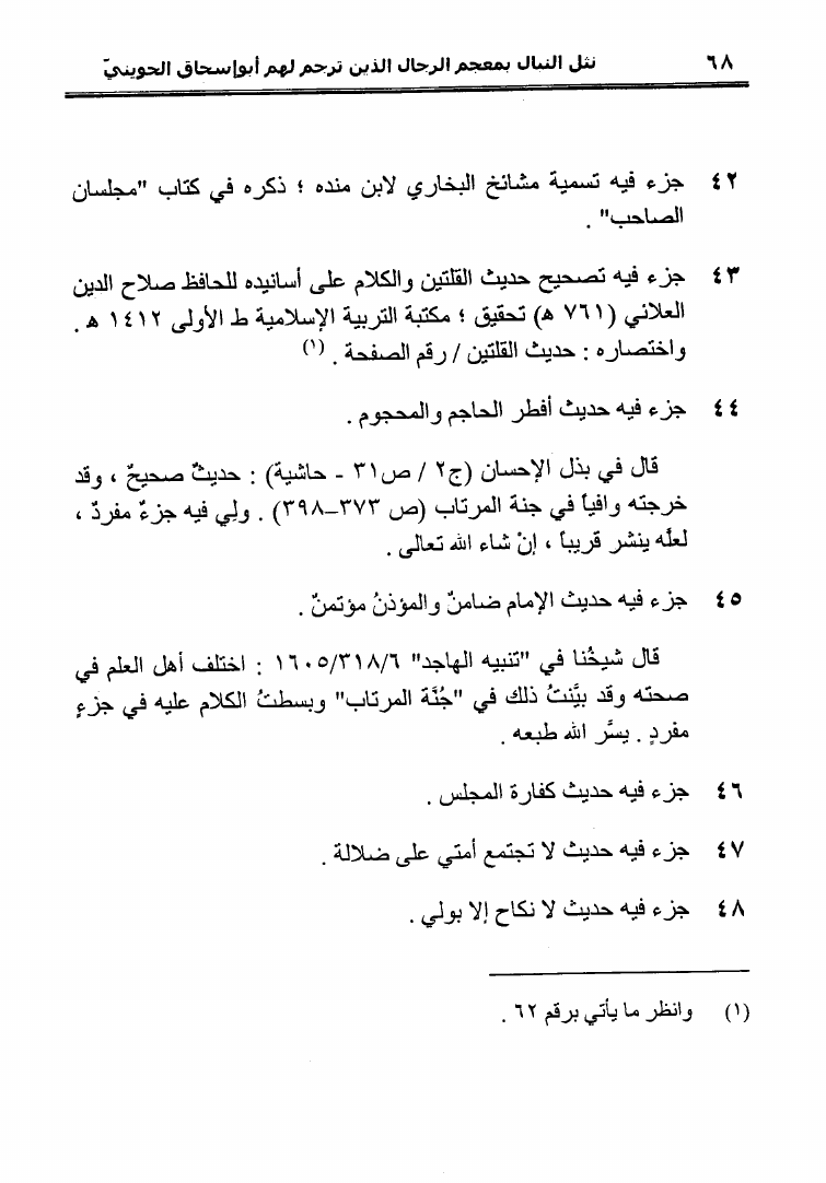 نام کتاب : نثل النبال بمعجم الرجال الذين ترجم لهم فضيلة الشيخ المحدث أبو إسحاق الحويني (ط. المحدثين) نویسنده : أحمد بن عطية الوكيل أبو عمرو جلد : 1 صفحه : 68
