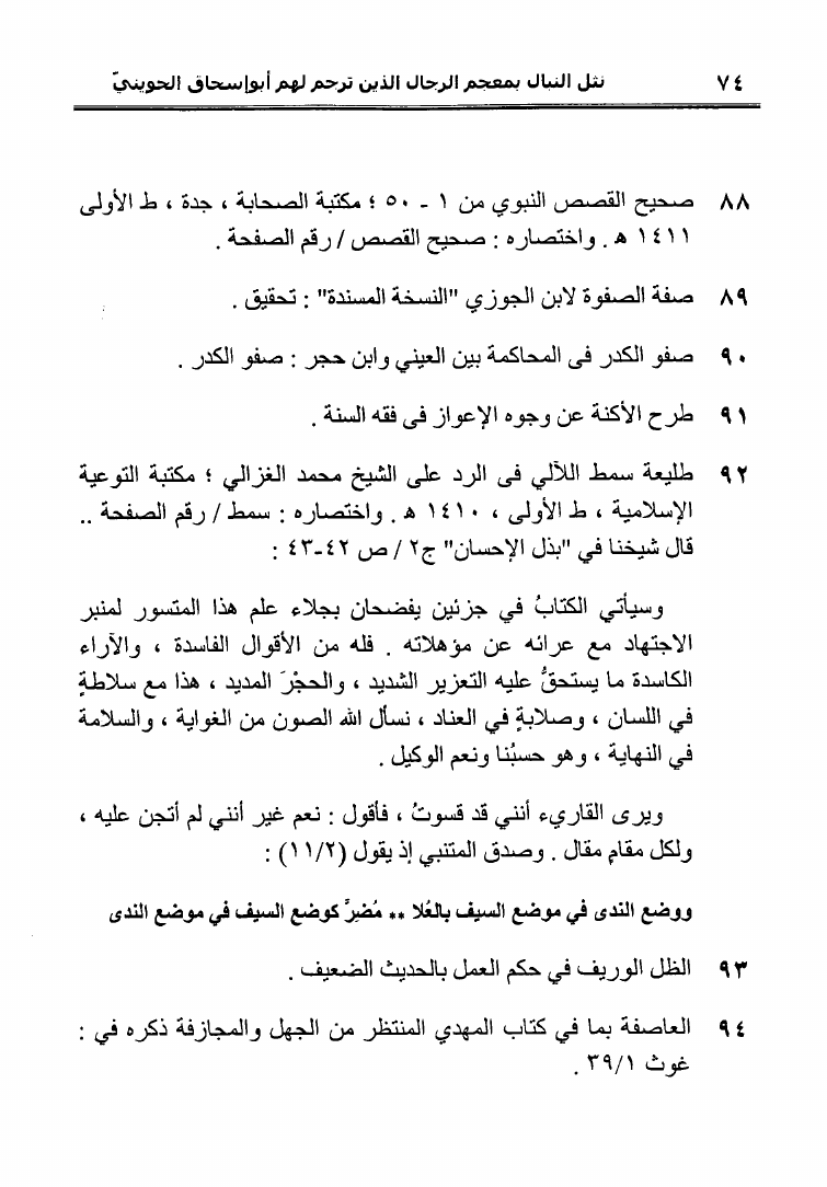 نام کتاب : نثل النبال بمعجم الرجال الذين ترجم لهم فضيلة الشيخ المحدث أبو إسحاق الحويني (ط. المحدثين) نویسنده : أحمد بن عطية الوكيل أبو عمرو جلد : 1 صفحه : 74