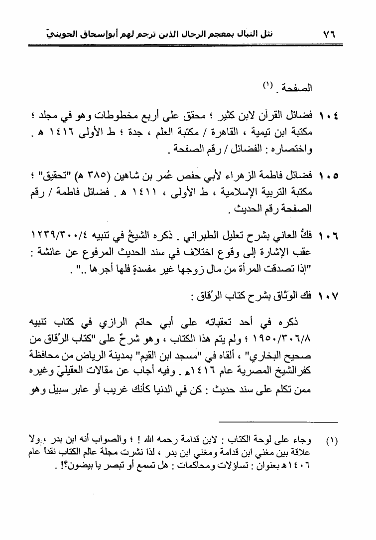 نام کتاب : نثل النبال بمعجم الرجال الذين ترجم لهم فضيلة الشيخ المحدث أبو إسحاق الحويني (ط. المحدثين) نویسنده : أحمد بن عطية الوكيل أبو عمرو جلد : 1 صفحه : 76