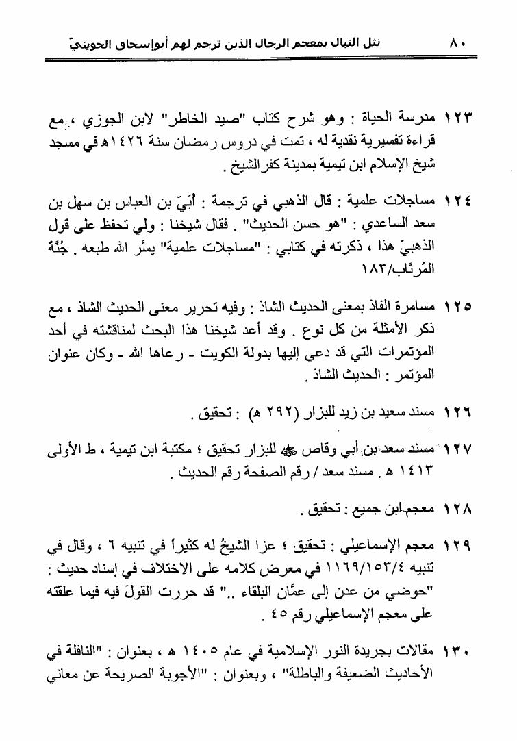 نام کتاب : نثل النبال بمعجم الرجال الذين ترجم لهم فضيلة الشيخ المحدث أبو إسحاق الحويني (ط. المحدثين) نویسنده : أحمد بن عطية الوكيل أبو عمرو جلد : 1 صفحه : 80