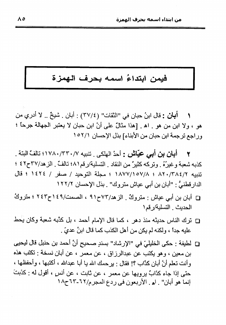 نام کتاب : نثل النبال بمعجم الرجال الذين ترجم لهم فضيلة الشيخ المحدث أبو إسحاق الحويني (ط. المحدثين) نویسنده : أحمد بن عطية الوكيل أبو عمرو جلد : 1 صفحه : 85