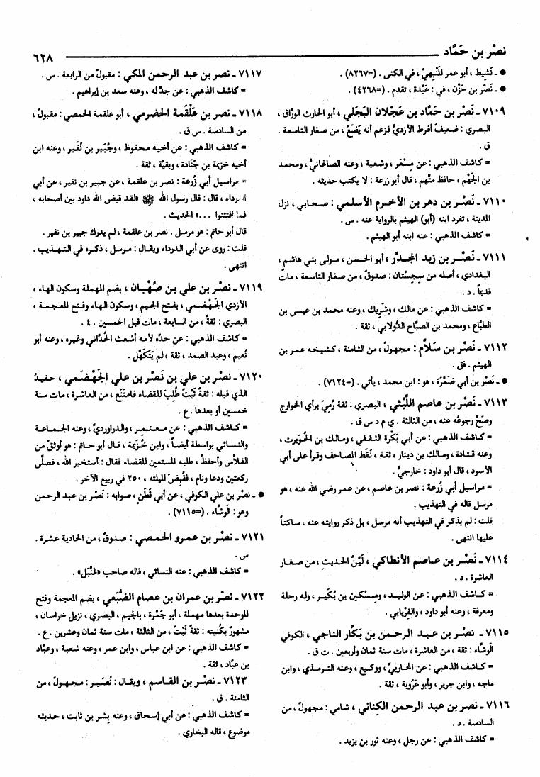 نام کتاب : تقريب التهذيب مجموعا إلى الكاشف ومراتب المدلسين ومقدمة الفتح وشرح العلل والكواكب النيرات ورواة المراسيل نویسنده : ابن حجر العسقلاني وغيره جلد : 1 صفحه : 628