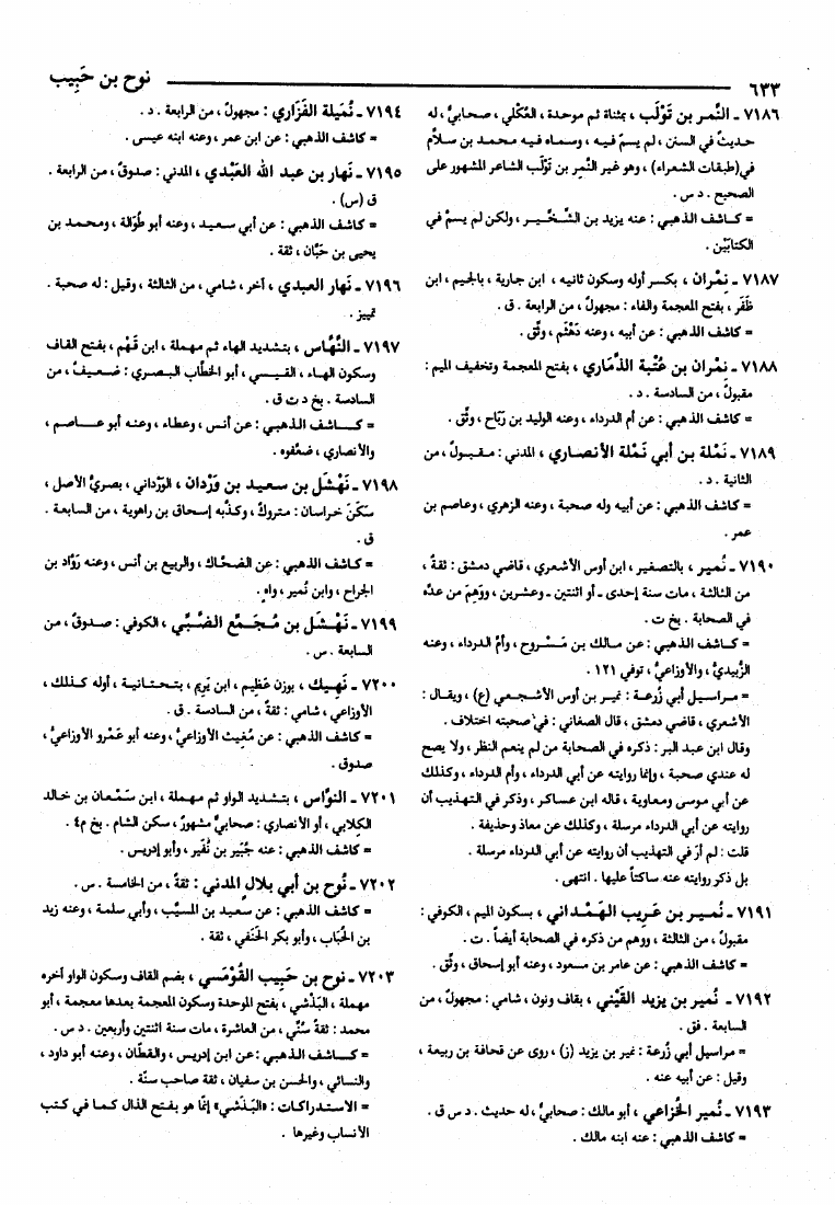 نام کتاب : تقريب التهذيب مجموعا إلى الكاشف ومراتب المدلسين ومقدمة الفتح وشرح العلل والكواكب النيرات ورواة المراسيل نویسنده : ابن حجر العسقلاني وغيره جلد : 1 صفحه : 633