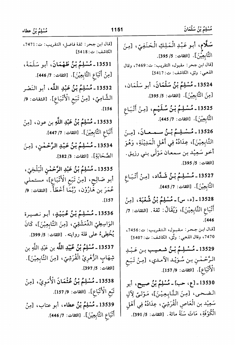تقريب الثقات لابن حبان