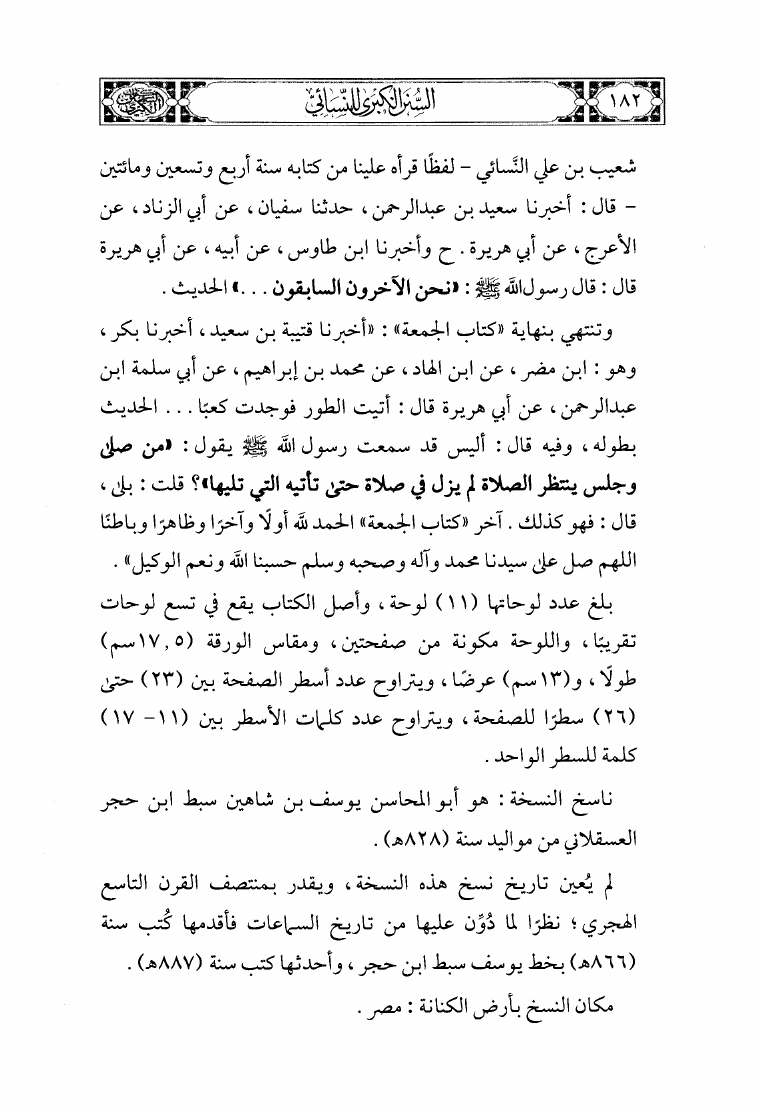 أحمد بن شعيب النسائي أبو عبد الرحمن