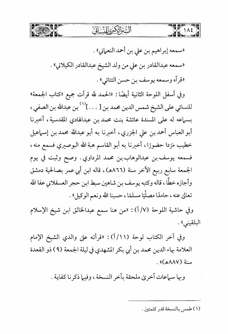 أحمد بن شعيب النسائي أبو عبد الرحمن