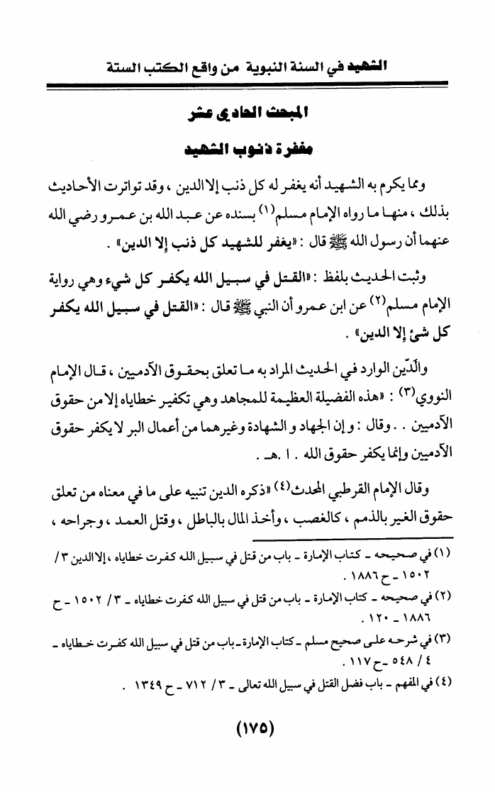 الشهيد في السنة النبوية من واقع الكتب الستة