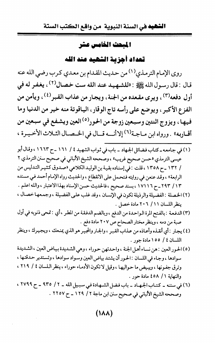 الشهيد في السنة النبوية من واقع الكتب الستة