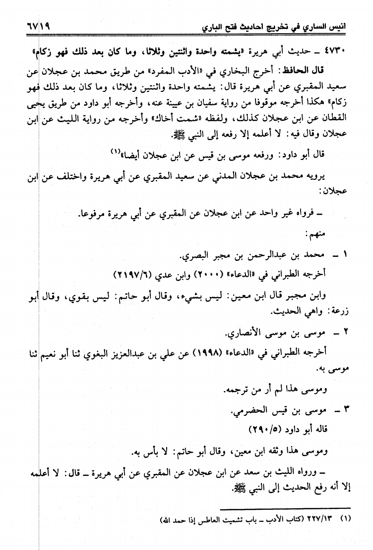 نام کتاب : أنيس الساري في تخريج وتحقيق الأحاديث التي ذكرها الحافظ ابن حجر العسقلاني في فتح الباري نویسنده : نبيل بن منصور بن يعقوب البصارة جلد : 1 صفحه : 6719