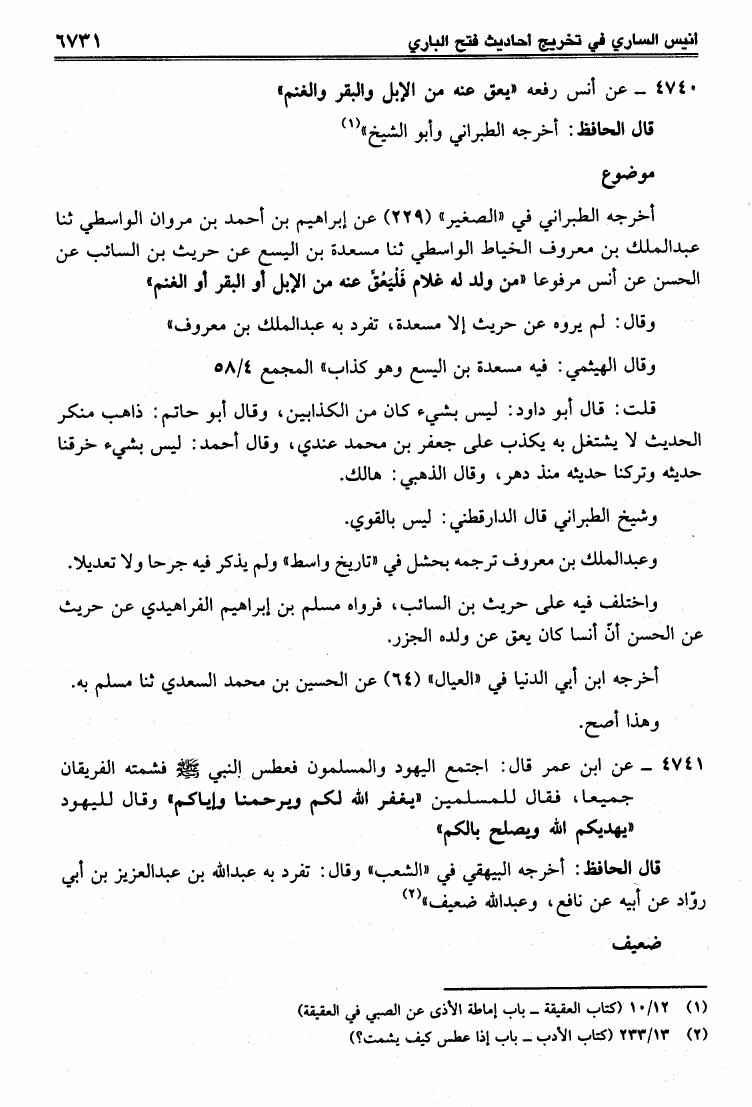 نام کتاب : أنيس الساري في تخريج وتحقيق الأحاديث التي ذكرها الحافظ ابن حجر العسقلاني في فتح الباري نویسنده : نبيل بن منصور بن يعقوب البصارة جلد : 1 صفحه : 6731