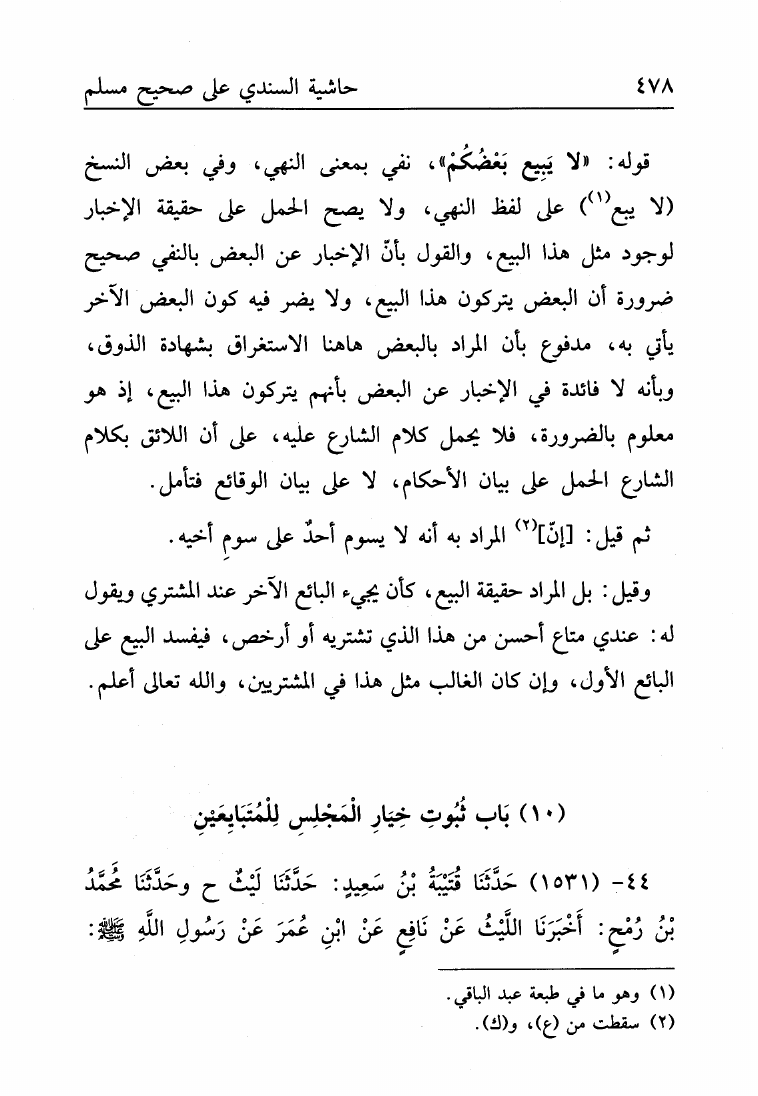 حاشية السندي على صحيح مسلم