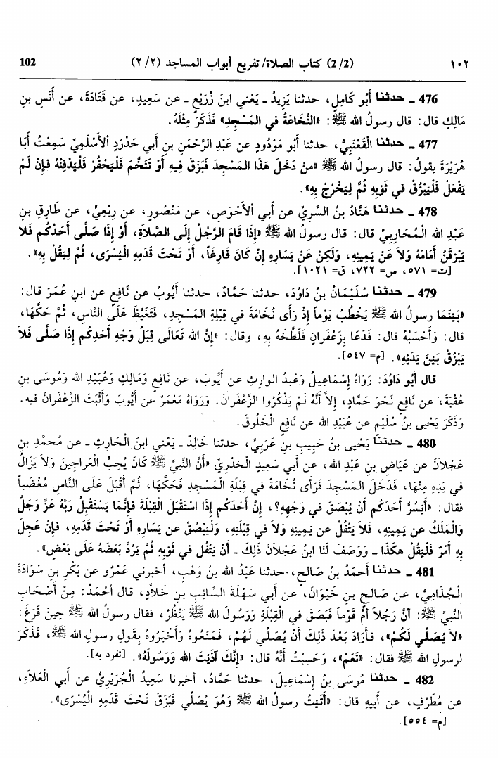 نام کتاب : سنن أبي داود، وبهامشه فوائد وشروح فقهية ولغوية مختارة من كتاب معالم السنن للإمام الخطابي (ت: العطار) نویسنده : أبو داود سليمان بن الأشعث السجستاني جلد : 1 صفحه : 102