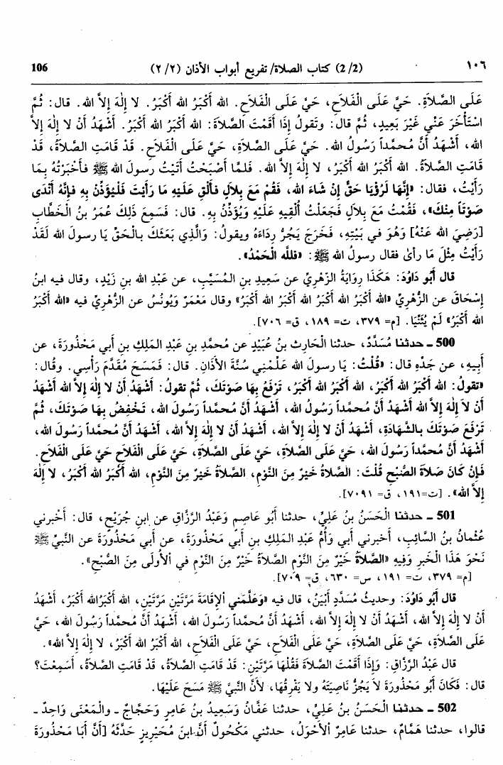 نام کتاب : سنن أبي داود، وبهامشه فوائد وشروح فقهية ولغوية مختارة من كتاب معالم السنن للإمام الخطابي (ت: العطار) نویسنده : أبو داود سليمان بن الأشعث السجستاني جلد : 1 صفحه : 106