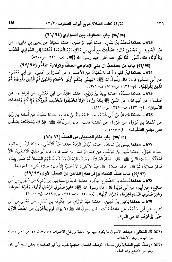 نام کتاب : سنن أبي داود، وبهامشه فوائد وشروح فقهية ولغوية مختارة من كتاب معالم السنن للإمام الخطابي (ت: العطار) نویسنده : أبو داود سليمان بن الأشعث السجستاني جلد : 1 صفحه : 136