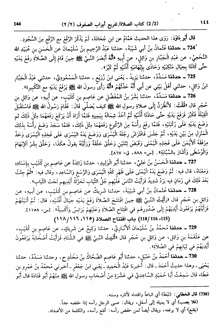 نام کتاب : سنن أبي داود، وبهامشه فوائد وشروح فقهية ولغوية مختارة من كتاب معالم السنن للإمام الخطابي (ت: العطار) نویسنده : أبو داود سليمان بن الأشعث السجستاني جلد : 1 صفحه : 144