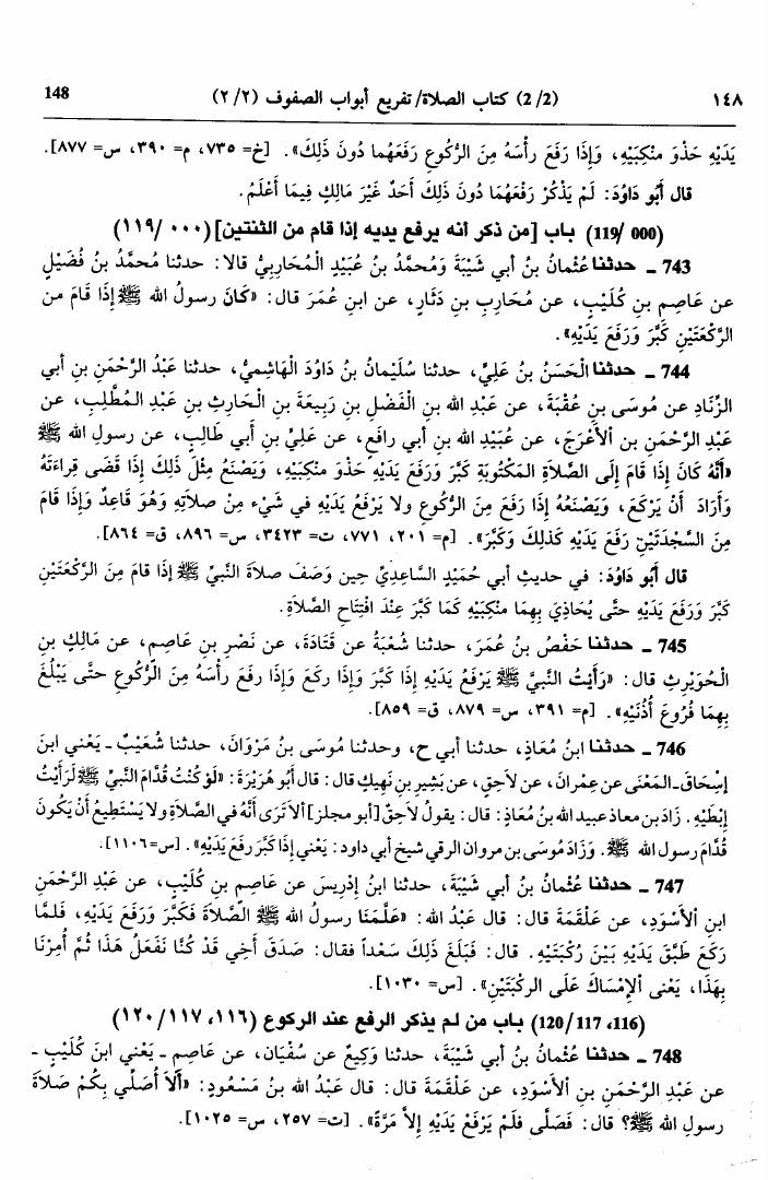 نام کتاب : سنن أبي داود، وبهامشه فوائد وشروح فقهية ولغوية مختارة من كتاب معالم السنن للإمام الخطابي (ت: العطار) نویسنده : أبو داود سليمان بن الأشعث السجستاني جلد : 1 صفحه : 148