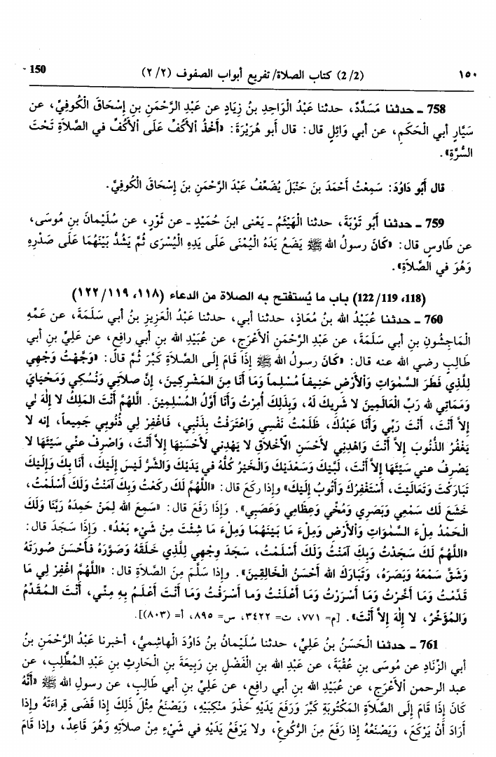 نام کتاب : سنن أبي داود، وبهامشه فوائد وشروح فقهية ولغوية مختارة من كتاب معالم السنن للإمام الخطابي (ت: العطار) نویسنده : أبو داود سليمان بن الأشعث السجستاني جلد : 1 صفحه : 150