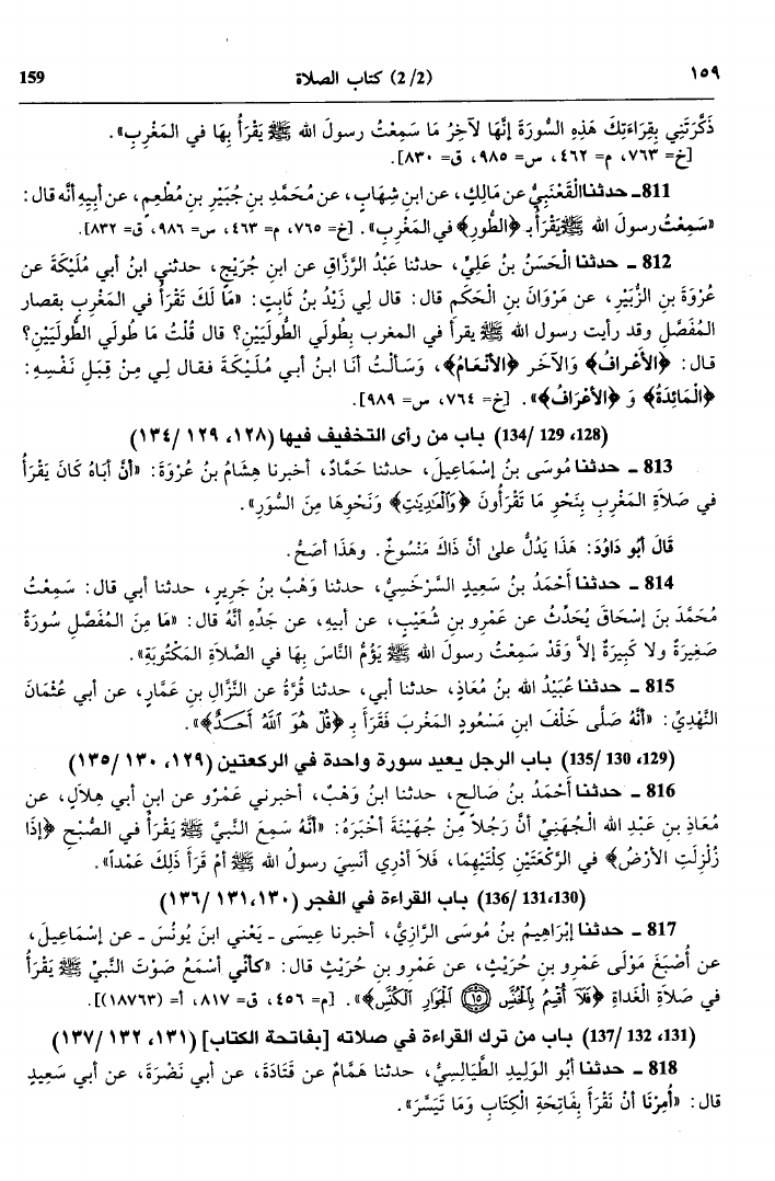 نام کتاب : سنن أبي داود، وبهامشه فوائد وشروح فقهية ولغوية مختارة من كتاب معالم السنن للإمام الخطابي (ت: العطار) نویسنده : أبو داود سليمان بن الأشعث السجستاني جلد : 1 صفحه : 159