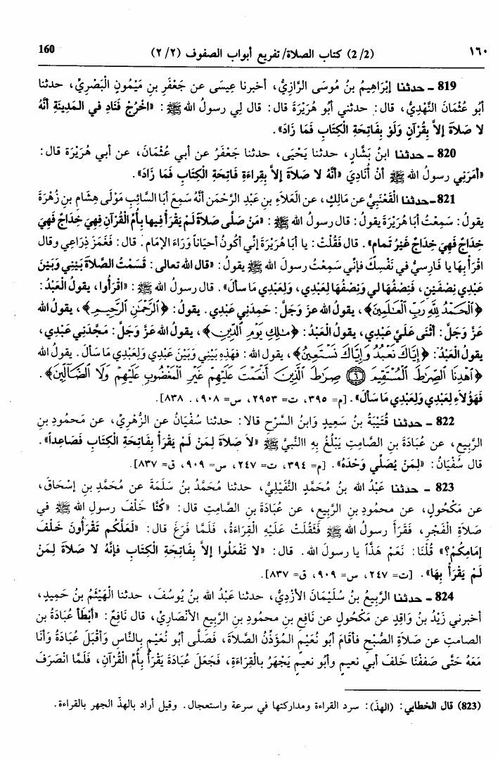 نام کتاب : سنن أبي داود، وبهامشه فوائد وشروح فقهية ولغوية مختارة من كتاب معالم السنن للإمام الخطابي (ت: العطار) نویسنده : أبو داود سليمان بن الأشعث السجستاني جلد : 1 صفحه : 160