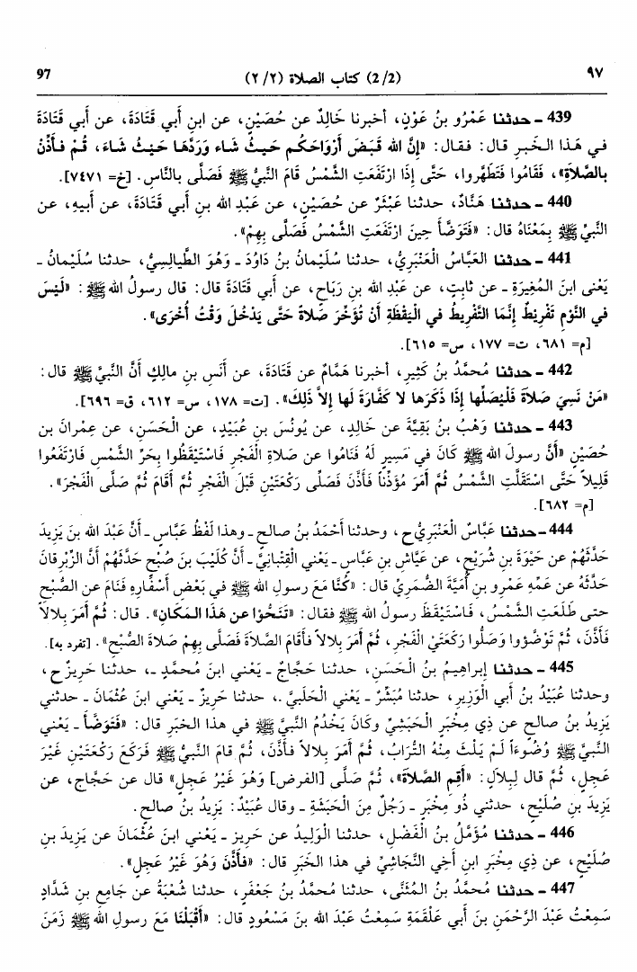 نام کتاب : سنن أبي داود، وبهامشه فوائد وشروح فقهية ولغوية مختارة من كتاب معالم السنن للإمام الخطابي (ت: العطار) نویسنده : أبو داود سليمان بن الأشعث السجستاني جلد : 1 صفحه : 97