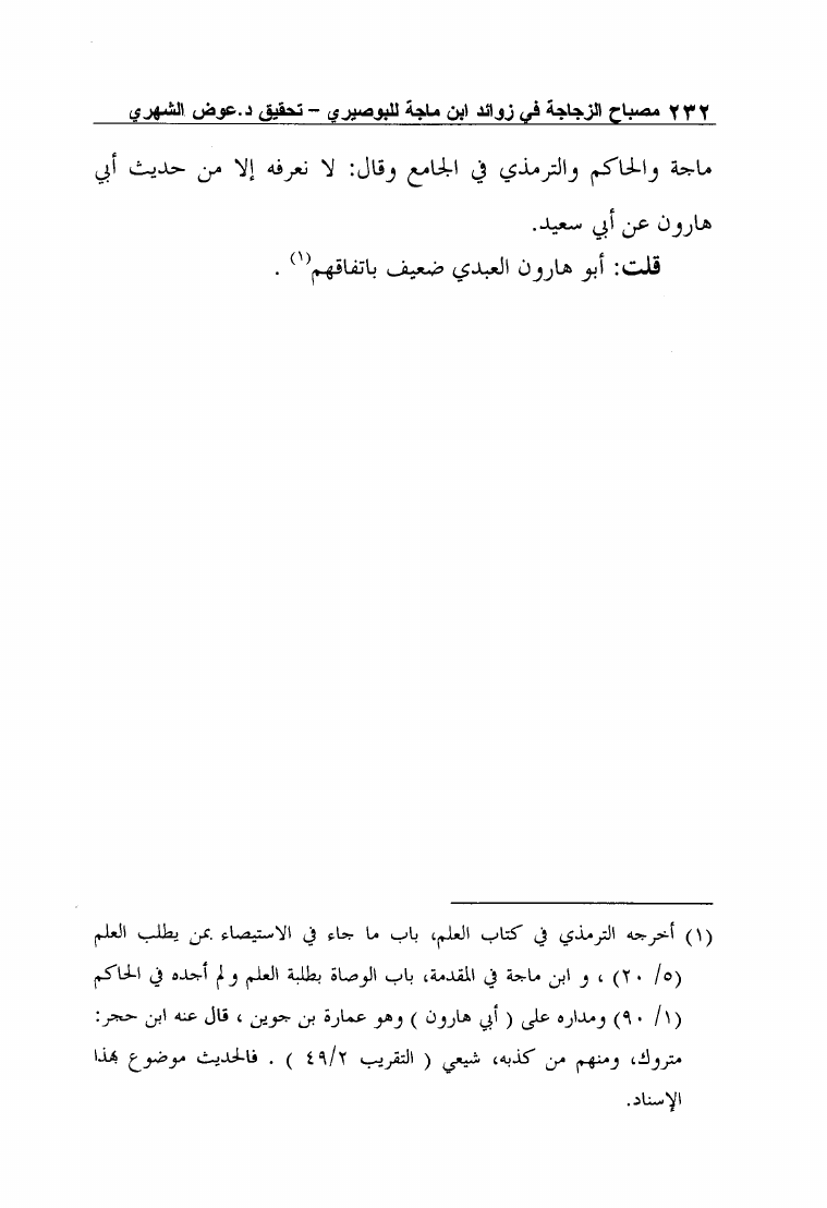 مصباح الزجاجة في زوائد ابن ماجة (ت: الشهري)