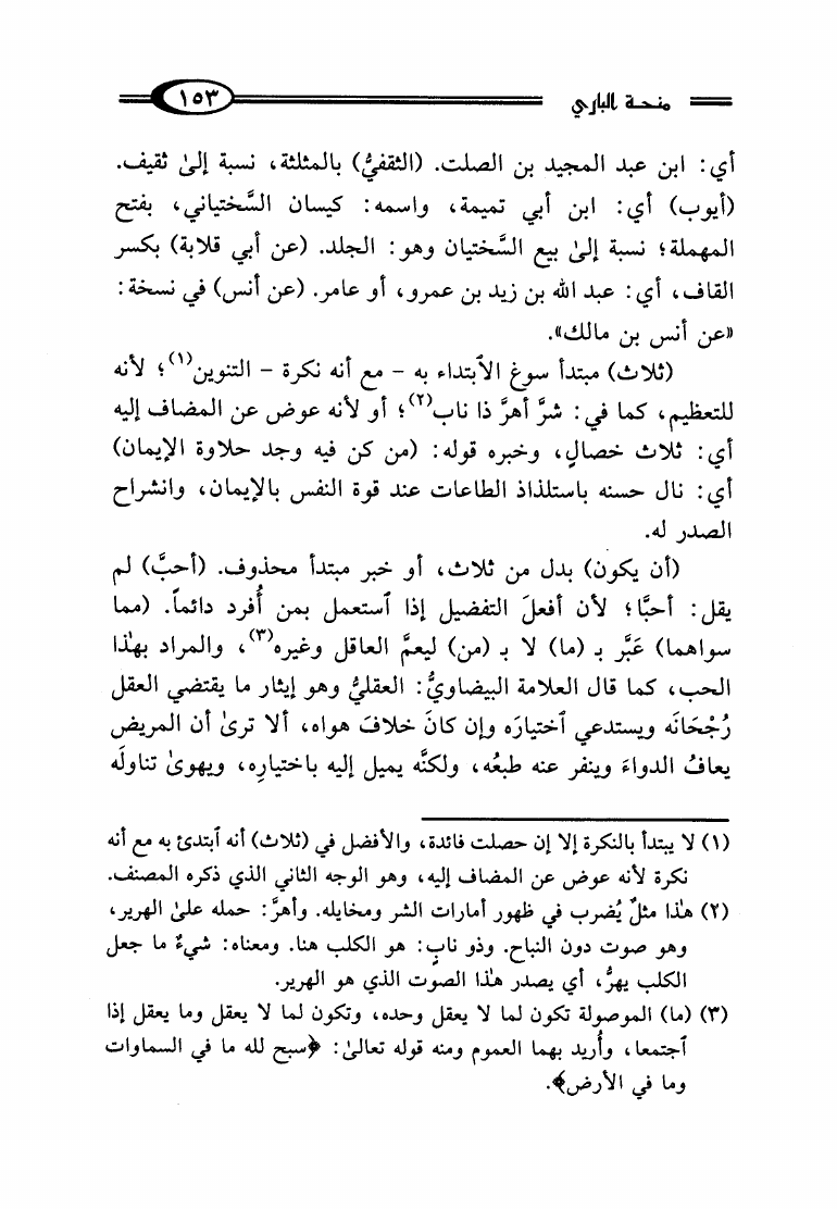 منحة الباري بشرح صحيح البخاري المسمى تحفة الباري